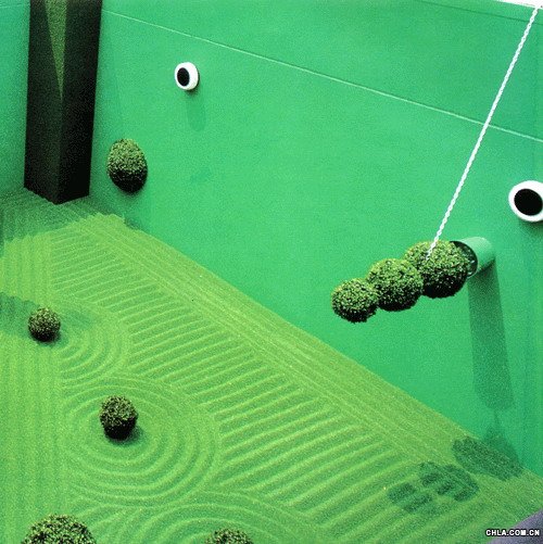 這樣的園林當然基于其惡劣現狀和受到非常少的預算的影響,但又并不是把固有的模式簡單的并置。她在做拼貼,這種拼貼在傳統(日式,歐式傳統園林)、現實(信仰匱乏,環境惡劣)之間建立了一種對話,是對傳統藝術的反諷,又是對現實生活的調侃。同時形成了自己的設計語言。這樣所謂“有意味的形式”的作品,在藝術界似乎司空見慣,但在景觀設計行業,卻是非常標新立異的。