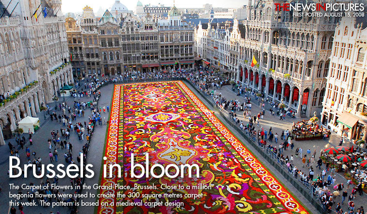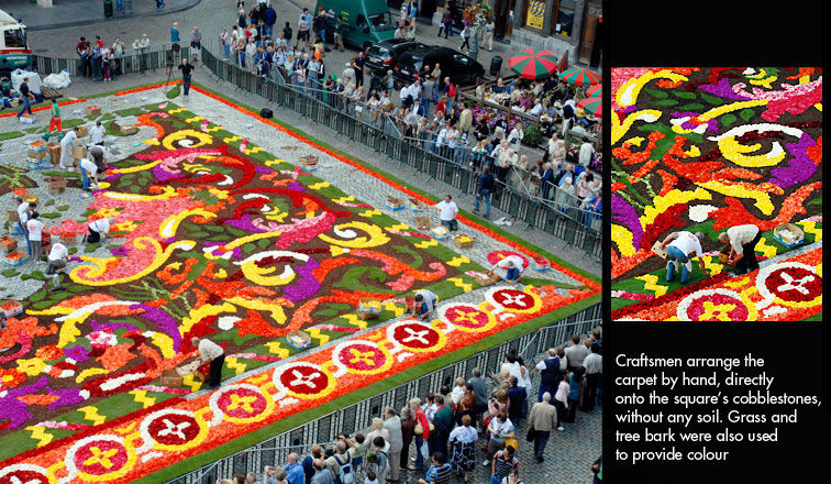 布魯塞爾的花地毯,由一百萬朵海棠花制成,每平方米有3百多朵花: