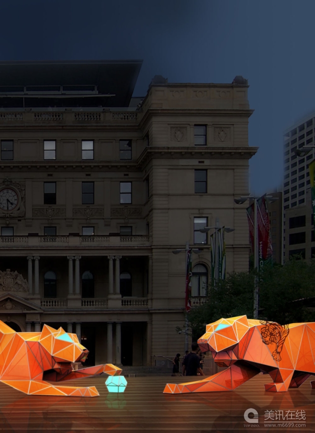 Lava公司在悉尼海關(guān)大樓門前設(shè)計(jì)了兩只大“老虎”,以此慶祝中國(guó)傳統(tǒng)新年。這兩只“老虎”將從2月11日一直陳列到3月14日,在慶祝中國(guó)虎年的同時(shí),讓人們意識(shí)到老虎已經(jīng)成為了瀕危動(dòng)物。 該事務(wù)所利用現(xiàn)代設(shè)計(jì)和制造工藝,結(jié)合了古代的燈籠藝術(shù),打造了這一對(duì)“老虎”。老虎高2.5米,長(zhǎng)7米,僅重200公斤。它們用鋁等材料制作,以耗電量較低的LED照明來(lái)點(diǎn)亮,顯得虎虎生威。 ![]() ![]() ![]() ![]() ![]() ![]()