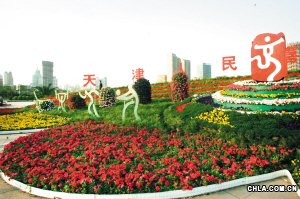 小白樓地區(qū):廣場(chǎng)中間和四周已栽植了很多灌木和皮,周?chē)鷥蓷l迎奧精品路——成都道、泰安道的綠化新建和改造工作已經(jīng)完成,20余種喬、灌、花、草類(lèi)苗木相結(jié)合栽植,綠地吸納了歐洲園林景觀的特點(diǎn)。