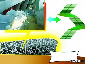 北京奧運場館的設計,首先是安全第一。北京的城市建筑抗震設防裂度為8度,奧運場館作為重大建筑工程,屬于甲類建筑,抗震設防裂度則提高到9度,以確保堅固。譬如水立方擁有上億個焊接點,點點科學焊接,完全可以抗擊大震。防火也是及其重要的一項指標,各個場館都有敏感度高的防火預警系統和一流的滅火設備。當發生突發事件時,場館會啟動緊急疏散預案,迅速組織公眾撤離。譬如鳥巢的疏散樓梯設計成“之”字形,這種樓梯比直線型的樓梯更有效快速安全撤離。