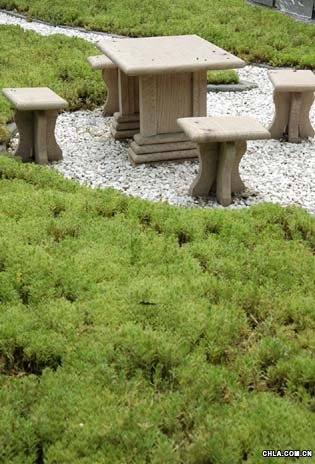 昨日上午,記者在該中心的一座小樓頂上看到,大約二十多平方米的屋頂,除中間留有一條鋪設碎石的走道和一張石桌、幾個石凳,其余全被長勢旺盛的綠草覆蓋。這種綠草茵茵的感覺,與周邊其他房屋頂上光禿禿的感覺形成鮮明對比。