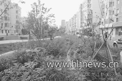 隨后,記者沿著安紅街一直向道里區(qū)愛建方向走去,發(fā)現(xiàn)沿途綠化無人修剪,幾棵枯死的樹成了市民的晾衣桿。因無人管理,綠地已變得荒草叢生,有的雜草都長到半米多高了。