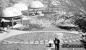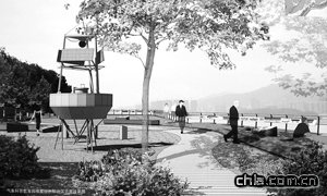 根據(jù)設(shè)計方案,公園南入口位于湖濱北路和東渡路口面南一側(cè)的山腳處,是公園的主要入口。入口休憩處將立起一座直徑3米的鏤空地球儀,球體由3根立柱支撐,總高度12米,為氣象信息廣場的主要標(biāo)志物,透過噴霧水景于固定時刻由球體內(nèi)側(cè)朝外噴射水霧,產(chǎn)生云霧繚繞的大氣效果。晚上,在燈光的照射下,巨大的地球儀也將成為一顆巨大光珠,與山上的海上明珠形成“雙珠輝映”景觀