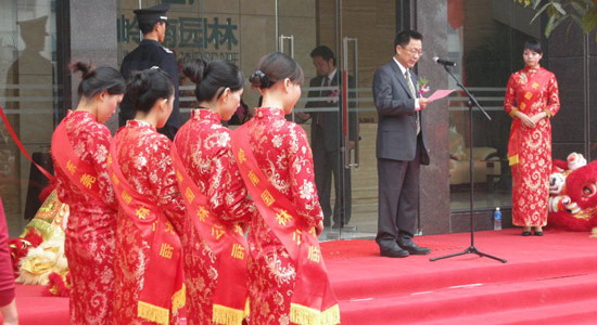 10點,慶典活動正式開始。陳旭堅副局長與楊學波副理事長分別發表了熱情洋溢的賀辭,兩位領導首先肯定了嶺南企業所取得的成績和為東莞市經濟建設做出的貢獻,并對嶺南企業及東莞園林協會喬遷新址表示祝賀。隨后,我司董事長兼總經理尹洪衛先生致歡迎辭,對各位嘉賓的光臨表示熱烈的歡迎,并簡要介紹了嶺南企業十年發展歷程以及目前的可喜態勢,尹總強調此次盛典可謂三喜臨門,其中二喜是我司和東莞市園林綠化行業協會新辦公大樓喬遷新禧,第三喜則是恰逢我司成立十周年慶典。他表示,今天的三喜臨門象征了嶺南企業將迎來新的機遇和發展,同時尹總也希望能和園林行業各界朋友進一步加強交流與合作,共同推動園林事業的持續穩定發展。