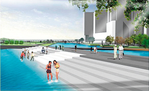挖掘新內(nèi)河,建造親水平臺、觀海天橋、玲瓏噴泉、陽光坡……明年,響螺灣將建起沿海河蜿蜒的彩帶島,為市民提供休閑娛樂的新去處。
