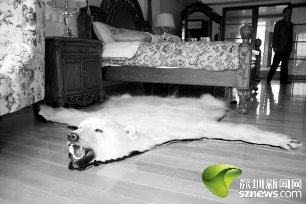 鋪著北極熊地毯的房間。
