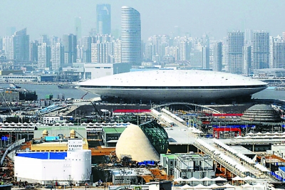 據介紹,一軸四館永久性建筑中,中國館、主題館已進入全面布展階段,世博中心已竣工,世博演藝中心正在進行內部精裝修和機電安裝。臨時場館方面,42個外國國家自建館已全部開工建設,其中已有32個完成結構施工進入裝修和布展階段,42個租賃館和11個聯合館已全部建成,具備向參展方交付布展條件。