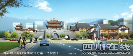 昨日上午,都江堰幸福路與建設(shè)路交叉路口已經(jīng)建起了一圈施工圍欄,東門城樓在這里破土開建。今后,這里將是都江堰歷史城區(qū)與現(xiàn)代城區(qū)的分界處。都江堰重建辦相關(guān)負(fù)責(zé)人孫凌霞說,東門城樓包括城門及附屬仿古樓群,占地約5900平方米,總建筑面積約3900平方米。城樓城門將橫跨幸福大道,有3個城門洞。中間為主洞,橫跨機(jī)動車道,兩側(cè)為輔洞,供行人及非機(jī)動車通行。