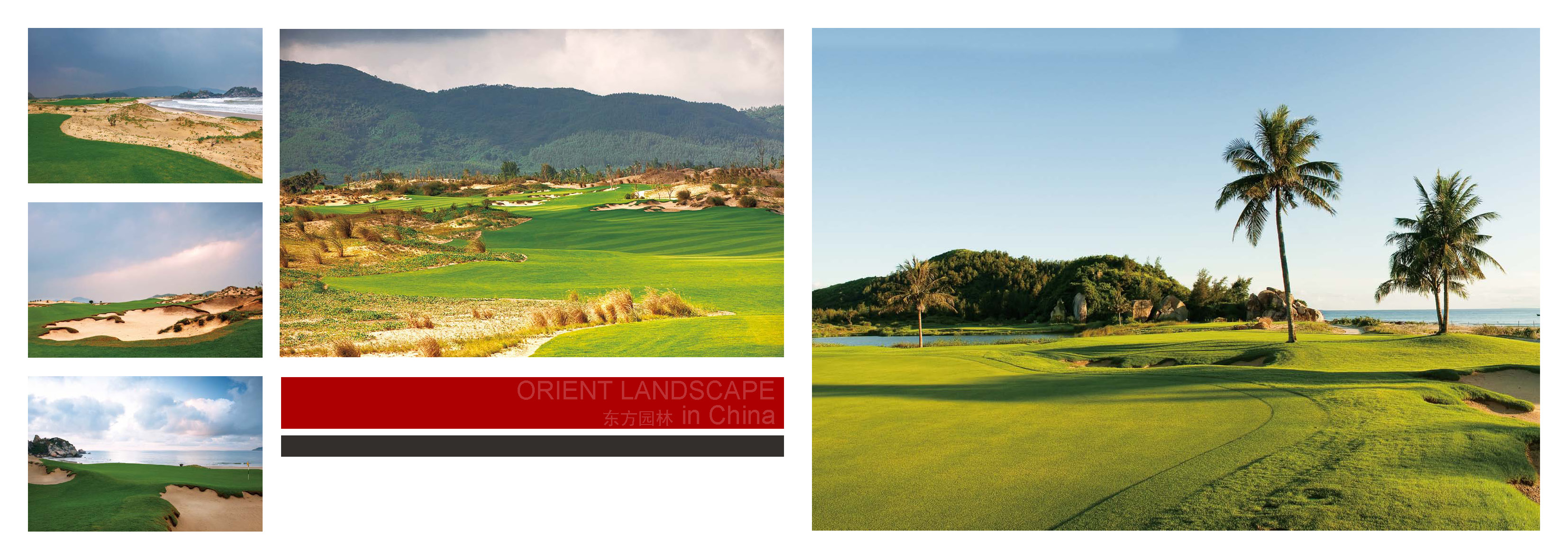 球場定位為古典海濱LINKS風格,體現出當地植被環境特色。球場的景觀則是濱海與內陸濱水風格的完美結合;山灣碧水同一色,天光云影共徘徊。我們在圖紙不完善的情況下,將設計師派駐現場,與業主密切配合,從尋找能體現球場特色的植物資源做起,在深入理解景觀區域造型的情況下,完成了從方案到施工圖的整個設計過程,并進行現場施工指導。各種植物、置石、甚至枯樹都成為設計師手中的素材,精心的位置安排使球場仿佛天然而生,業主和球場總設計師對最終效果非常滿意。美方總設計師TOMWeiskopf說:按照他的要求,景觀通常要修改3~4次,而我們的,可以一次通過。