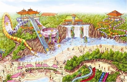 建成后的武漢“歡樂水魔方”水主題公園效果圖