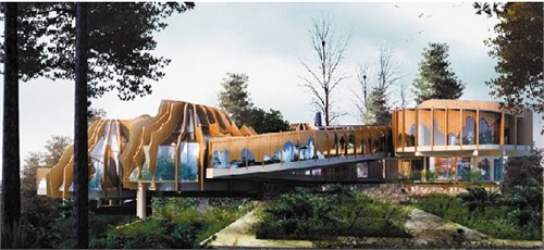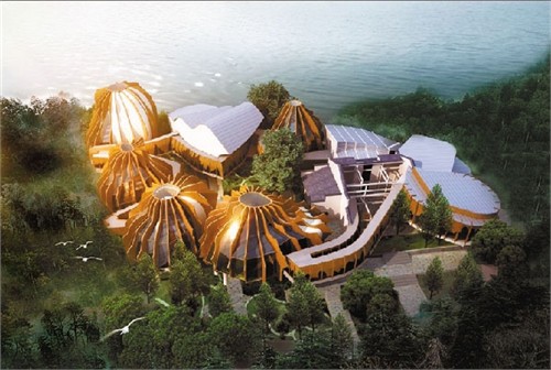 據了解,位于東興區東桐路圓頂山、西林寺西側的張大千博物館,由世博會西班牙館的設計團隊——西班牙EMBT建筑事務所設計,這不僅代表了張大千與畢加索珍貴友誼的延續,也是世界著名建筑事務所首次設計我市城市的標志性建筑。設計師以“糅合東西方文化精華”和“建世界一流博物館”為設計原則,建筑中既隱含張大千作品中最具特征的飛天和中國傳統的葫蘆造型,又遵循畢加索自畫像的框架布局。整個建筑群位于圓頂山山頂,在樹林中若隱若現,遠觀似山,近看是建筑。整個博物館造型新穎而獨特,并與西林公園完美地融于一體,給人一種創新設計的視覺沖擊。
