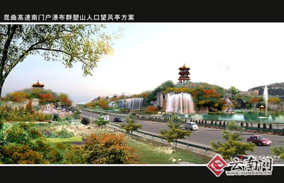昆曲高速南門戶瀑布群塑山入口望風亭效果圖