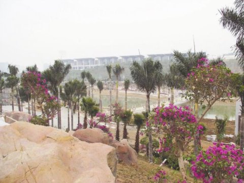 記者在現場看到,民歌湖形成了6個各具特色的景觀區域,分別為沁香苑、棕櫚島、詠竹園、疊翠谷、溢彩坡、淘金灘。目前各個景觀區的綠化已基本完成。綠化施工中采用了喬灌相結合的植物配置,豐富了坡地層次和色彩,還移植了野生植物,模擬自然生態環境,屆時游客在沿途就能欣賞到四季花卉