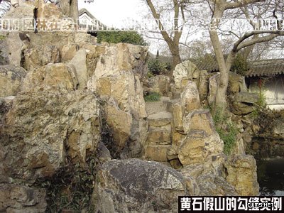 假山勾縫的程序,一般從假山的底部開始,由下而上,先里后外,先暗后明,先橫后豎,逐漸展開。如果上、下兩塊疊砌的山石的縫隙過大,出現中空現象,那么先要用混凝土進行充填,再用鑲石勾縫。從前考究的明清時期的假山,常用糯米汁摻適當的石灰,搗制成漿,來作為膠結材料;還有一種就是用明礬汁拌石灰,干結后它們的硬度都很高,即使是一錘砸下,也只能砸出一個小坑,而不太會破碎。此外,尚有桐油石灰(或加紙筋)和石灰紙筋等做法,但干結凝固較慢,存在著明顯的不足。在太湖石假山勾縫時,往往再加青煤,這樣使石灰的白色近似于太湖石的石色;如果是黃石假山,則勾縫后再用鐵屑鹽鹵進行粉刷所嵌之縫,使其和黃石色澤相渾同。現代假山勾縫所用的材料則都是水泥砂漿,水泥和過篩的細黃沙配比標準,一般為1∶3。太湖石假山因水泥砂漿和自然的太湖石色澤基本接近,所以一般不再摻色。 如果是黃石假山則必須加入土黃色粉,以近似黃石的色澤,現一般常用鐵紅和中黃兩種氧化亞鐵顏料,按不同需要配比。勾縫所用的工具為“柳葉抹”,這是一種稍具彈性、狹長微彎的鐵鋼片拓條。勾縫的手勢操作有橫勾、豎勾、倒勾等方法,勾縫時,應用力壓緊。太湖石假山的勾縫,應沿著拼石的輪廓曲線的走向,線條要柔軟自然,避免僵直,接縫要細膩,與山石要渾為一體。黃石假山的勾縫,要與由黃石的層積巖節理紋路相一致,有時要顯出石縫,將勾抹材料隱于縫內,以形成較大的節理裂縫,這樣便會產生天然風化趣味;尤其是在處理崖壁等造型時,勾縫應多留些橫縫、豎縫以及凹縫。在勾縫2~3小時后,等水泥砂漿尚未最終凝固時,再用刷子蘸水刷縫。每隔一定的時間,再對所嵌之縫進行噴水,保濕,以增強其強度。 總之,假山的勾縫要求飽滿密實,收頭要完整,并適當留出一定的山石縫隙。