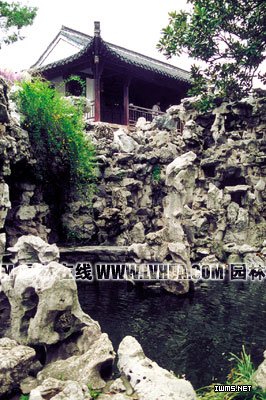 挑與壓 一般用具有橫向紋理的山石作橫向挑出,以造成飛舞之勢,所以又稱“出挑”。“單挑”為一石挑出,“重挑”為挑石下有一石承托。如果要逐層挑出,出挑的長度最好以挑石的1/3為宜。挑石一定要選用一些質地堅固而無暗斷裂痕的山石,其判別的方法,一般以輕敲聽聲來鑒別。如果是兩端都挑出,則對挑石的選用更需細心。現蘇州假山匠師也有采用豎石作出挑的,但難度較高。“挑”的關鍵是“巧安后堅”,“前懸渾厚,后堅藏隱”,所以它和“壓”具有不可分割的關系。“偏重則壓”,即橫挑而出的造型山石會造成重心外移,偏于一側,這時就必須要用山石來進行配壓,使其重心穩定,所以壓石尤以能達到堅固而渾然一體最為重要。一般一組假山或一組峰巒,最后的整體穩定是靠收頂山石的配壓來完成的,此時則需要選用一些體量相對較大、造型較好的結頂石來配壓收頂,這樣會顯得既穩固又美觀。 飄 挑頭置石為“飄”。飄石的使用主要是豐富挑頭的變化。飄石的選用,其紋理、石質、石色等應與挑石相一致或協調。在傳統上,有時還可將飄石處理成各種的動物形象;而在現代疊石技法上,在傳統的“飄”的疊法基礎上,又有了新的突破和發展,它常選用一些體量較小、具有狹長、細彎、輕薄等特征的山石,按照造型構思,利用黏結材料以及捆、綁、卡、夾、支、撐、掛等方法,進行定位、定形,從而創作出一種石與石之間,具有留空、留白特點的鑲石或搭接技術,通過“飄”的處理,能使假山的山體外形輪廓顯得輕巧、空透、飄逸。它多用于太湖石假山類型中的小品堆疊。 疊 “巖橫為疊”,即用橫石進行拼疊和壓疊,以形成橫向巖層的結構的一種疊石技法,這是傳統假山堆疊中最常用的方法。如網師園“云岡”黃石假山的造型,就是運用了以“巖橫為疊”的主要手法而構成的。但在具體堆疊中,必須留意石與石之間的紋理相一致, 豎 是指石壁、石洞、石峰等所用的直立之石的一種疊石技法。用豎石進行豎疊,因所承受的重量較大,而受壓面又較小,所以必須要做好剎墊,讓它的底部平穩,不失重心,并拼接牢固。黃石假山的風格有橫疊和豎疊之分,如耦園黃石假山中的懸崖和矗峰就是用豎疊這種豎向的巖層結構進行施工造型的。在豎疊時,應注意拼接的咬合無隙,有時則需多留些自然縫隙,不作滿鑲密縫,以減少人工痕跡。 墊 處理橫向層狀結構時所用的剎石。在向外挑出的大石下面,為了結構穩妥和外觀自然,形成實中帶虛的效果,特墊以石塊。此外,在假山施工過程中,都必須注意用剎片進行墊實,只有這樣,才能使山石穩定牢固。古代假山的堆疊,向來以干砌法為主,即在不抹以膠結材料(如灰漿等)的前提下,使構成假山的山石重心穩定、結構牢固。所以說,疊山墊石最為關鍵。而膠結材料除了增加假山的整體強度外,還具有修飾山石間的拼接,使其天衣無縫,渾然一體,并有自然巖體的風化趣味的作用。墊足墊穩,不但可省膠結材料,而且堅固勝之。 鉤 即山石在橫平伸出過多的情況下,在挑出的造型山石的端部,放置一塊具有轉折形態和質感的小型山石,或向下作懸鉤,以改變橫向造型的呆滯。“鉤”也是“金華幫”傳統的疊石方法,它主要用山石和輔助鐵件進行石與石之間的鉤接收頭,或對以條石為框架的假山山體的包貼。 撐 也稱“戧”,即用斜撐的支力來穩固山石的一種做法。山石偏斜、懸挑、發拱、收頂等均要用撐。撐石必須選擇合理的支撐力點,外觀還應與山體的脈絡相連貫,以渾為一體。撐因與黃石假山的橫平豎直的巖層節理不甚相符,所以不相適用,它常用于太湖石假山中,但也僅作為一些特殊置石的輔助加工和修飾,而且一般其用石也較小。 以上所列的南北疊石字訣,只是古代疊山匠師在假山造型施工中的一些典型手法,這些造型手法在實際施工中應靈活運用,切不可拘泥形式,刻意去追求。