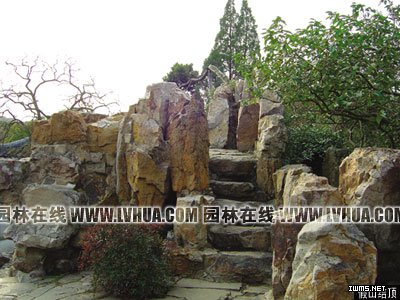 在晚明至清代中葉的假山組合單元中,主要有絕壁及峰、巒、谷、澗、洞、路(蹬道)、橋、平臺、瀑布等,其組合方法大抵是臨池一面建有絕壁,絕壁下設(shè)路(有的則以位置較低的石橋或石磯作陪襯),再轉(zhuǎn)入谷中,由蹬道盤旋而上,經(jīng)谷上架空的橋(石梁)至山頂。山頂上或設(shè)平臺,或建小亭,以便休憩、遠(yuǎn)望。一般峰、巒的數(shù)量和位置,都是根據(jù)假山的形體、大小來決定的;而石洞只不過一二,常隱藏于山腳或山谷之中;少數(shù)在山上再設(shè)瀑布,經(jīng)小澗而流至山下。但園中假山并不一定都具備這些單元,有的只是部分,如明代假山的主體,多半用土堆成,只是假山臨水處的東麓或西麓建一小石洞。如蘇州藝圃在山的西麓,南京瞻園在山的東麓。這種辦法既可節(jié)省石料、人工,又可在山上栽植樹木,以形成蔥郁蒼翠的山林之氣,其景與真山無異。至于清末的假山,則形體多半低而平,在橫的方向上,很少有高深的谷、澗以及較大的峰巒組合,僅在縱的方面,以若干蹬道構(gòu)成大體近于水平狀的層次。 絕壁 用太湖石疊砌的絕壁(石壁)是以臨水的天然石灰?guī)r山體為藍(lán)本的,由于其受波浪的沖刷和水的侵蝕,會在表面形成若干洞、渦以及皺紋等,并會產(chǎn)生近似垂直的凹槽,其凸起的地方隆起如鼻隼狀。大小不一的渦內(nèi),有時有洞,但洞則不一定在渦內(nèi)。洞的形狀極富變化,邊緣幾乎都為圓角,在大洞旁往往錯列有一二小洞。環(huán)秀山莊的石壁,主要模仿太湖石渦洞相套的形狀,渦中錯雜著各種大小不一的洞穴,洞的邊緣多數(shù)作圓角,石面比較光滑,顯得自然貼切。該假山西南角的垂直狀石壁作向外斜出的懸崖之勢,堆砌時不是用橫石從壁面作生硬挑出,而是將太湖石鉤帶而出,去承受上部的壁體。這樣既自然,又耐久,渾然天成,而不像有的假山用花崗巖條石作懸梁挑出,再在條石上疊砌湖石,顯得生硬造作。 黃石和石灰?guī)r一樣,在自然風(fēng)化過程中,巖面的石塊會有大有小,也會有直有橫有斜,互相錯綜,而且有會有進(jìn)有出,參差錯落。蘇州耦園東部黃石假山的絕壁最能體現(xiàn)這種情形。其直削而下臨于池,橫直石塊大小相間,凸凹錯雜,似與真山無異。園林學(xué)家劉敦楨教授認(rèn)為:“此處疊石氣勢雄偉峭拔,是全山最精彩的部分。” 洞室 一般設(shè)計在山體的核心部位,其大小須考慮到人體活動的范圍,所以高度常在2.20~2.50米之間,洞室周圍的面積以不小于3.0~4.0平方米為宜,如環(huán)秀山莊的假山石洞,其直徑在3米左右,高約2.7米。在設(shè)計洞室時,首先要考慮到壁體的堅固性,所以不論假山時代的早晚,一般多用橫石疊砌為主,同時還必須考慮到通風(fēng)、采光,所以一般在洞壁上,還設(shè)計若干小洞孔隙,有的則在洞壁上開較大的窗洞,以利用日照的散射與折射光線。采光的要求,應(yīng)以即便是陰沉的白晝,也能借助由外透進(jìn)來的散射光線,識別人形及其一般人的行為活動為好。 洞頂?shù)淖龇ㄒ话阋蚤L條石板覆蓋較為普遍,尤其是一些年代較為久遠(yuǎn)的假山,或一些深長的山洞。也有用“疊澀”(即用磚、石、木等材料作出層層向外或向內(nèi)疊砌挑出或收進(jìn)的形式)的方法,向內(nèi)層層挑出,至中點再加粗長石條,并掛有小石如鐘乳狀的,如惠蔭園水假山石洞,這類假山一般洞室較大。而清代乾嘉年間戈裕良所創(chuàng)造的“將大小石鉤帶聯(lián)絡(luò)如造環(huán)橋法”,采用發(fā)起拱的穹窿頂或拱頂?shù)慕Y(jié)構(gòu)處理,則更合乎自然。一般洞頂?shù)纳喜浚褪堑巧胶蟮纳巾斊脚_了,所以也必須考慮用必要的石塊進(jìn)行鋪平,灌漿,再覆土,或花街鋪地,并考慮一定的散水坡度,設(shè)計好散水孔。洞頂?shù)慕Y(jié)頂?shù)缴巾斕畛滗伷绞暮穸纫话銘?yīng)在0.50~0.60米以上,否則峰洞過分接近山巔,會感到山體的單薄感和虛假感。山巔平臺的外側(cè)需要設(shè)計女兒墻,以起到具有保護(hù)性質(zhì)的欄桿作用,同時它也是懸崖峭壁的山頂?shù)氖枕敳糠郑詰?yīng)注意其起伏變化。洞室內(nèi)外還必須設(shè)計有內(nèi)、外的登山臺階,即蹬道,由洞內(nèi)到山頂?shù)臉翘菔降诺莱TO(shè)計成螺旋狀,其高度大致與洞門的高度相等,一般設(shè)計得接近人體的高度,即在1.85米左右,這樣可起到使人感到需要稍微低頭才能進(jìn)出的心理反應(yīng)的效果。
