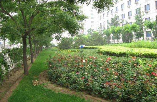 綠地內整體層次分明并且三季有花四季常青