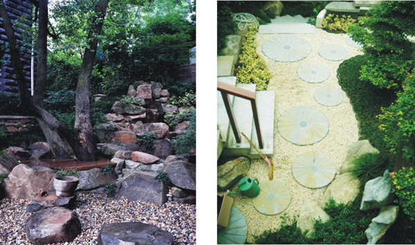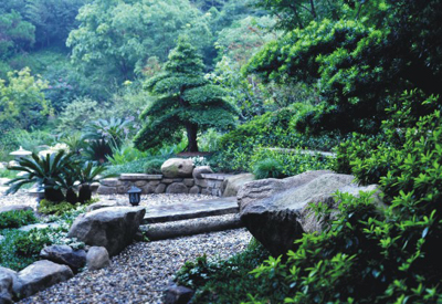 2.2 如何實現古典園林風格與現代風格相融合 雖然受傳統庭院的影響,但在植物、庭院構筑物上有所變化,甚至是有所簡化。游線布局曲直結合,較少出現傳統園林的彎彎徑徑。與家居生活聯系較緊密。如陽光房的設置,霧森營造氛圍,且可凈化濕潤空氣。在技術路線上,一是對傳統庭院風格與造園觀念的繼承;二是采用具有現代設計手法和創新理念。園林小品設施現代、生態、合理,新舊材料的妥善運用。設計手法里加強對傳統風情的渲染。例如空間組織小中見大,利用地形起伏、植物、小品景石轉換視線層次,空間層層轉化,起到移步景異的效果。