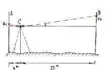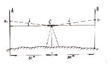 5.現在,再扼要地介紹水準儀i角的測定辦法,如圖所示: