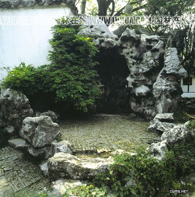 仄立避“閘” 假山石的疊置可立、可臥,也可似蹲狀。但仄立的兩塊山石則不宜象閘門一樣,否則很難和一般疊置的山石相協調。不過這也并不是絕對的,在自然界就有仄立如閘的山石,如在作為余脈的臥石處理時,可少許運用,但必須處理得很巧妙。