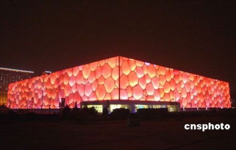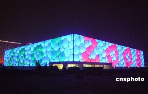 國家游泳中心又稱“水立方”(Water Cube),位于北京奧林匹克公園內,是北京為2008年夏季奧運會修建的主游泳館,也是2008年北京奧運會標志性建筑物之一。它的設計方案,是經全球設計競賽產生的“水的立方”([H2O]3)方案。其與國家體育場(俗稱鳥巢)分列于北京城市中軸線北端的兩側,共同形成相對完整的北京歷史文化名城形象。國家游泳中心規劃建設用地62950平方米,總建筑面積65000-80000平方米,其中地下部分的建筑面積不少于15000平方米,長寬高分別為 177m ×177m ×30m。