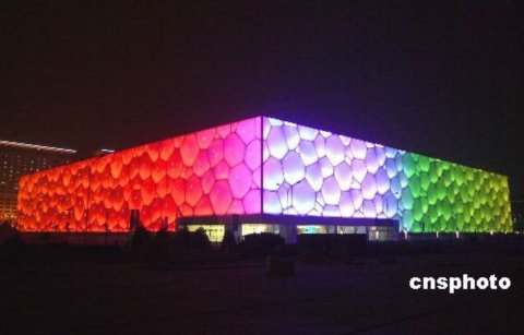 水立方:燈光夜幕下的夢幻(組圖)