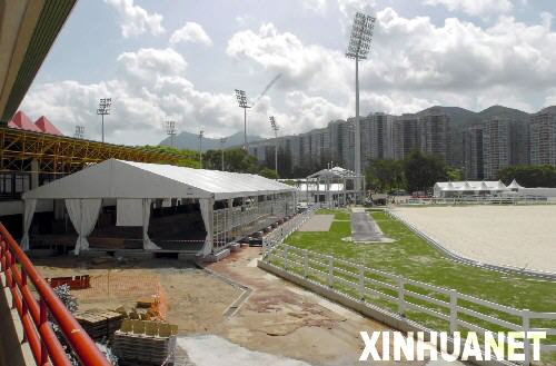 7月7日記者拍攝的奧運馬術賽場一角