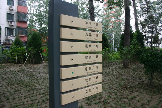 清華東路道路綠化工程道路南側呈帶狀依次分布各主題廣場,分為學院廣場、逸趣廣場、棋牌廣場、健身廣場、童趣廣場、空廣場、交流廣場等。
