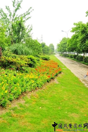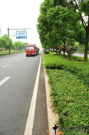 本著"因地制宜,適地適樹"的原則,結合我公司在類似公路綠化設計中的經驗,經多方面的比較考慮,去苗圃親自選購,按照設計要求,篩選出優良的植物材料。因為采購人員的負責,運輸到施工現場的苗木樹形優美,樹冠飽滿,分車帶的香樟和無患子,分叉點基本一致,形成統一感,整齊大方,又有亞喬木及球類、時花的點綴,讓色彩交織滲透于道路內外,形成和諧、統一的都市景觀大道。道路兩旁按不同的風格進行植物搭配,充分利用多種植物的不同形態、色彩及起伏有致的地形,景石的布置,時花的艷麗,以形成不同的道路種植特色,營造氣勢磅礴的的景觀效果。中間分車帶的紫葉酢漿草和紅花酢漿草按設計圖的比例配置在銀姬小蠟、花葉絡石、金森女貞的布置中,依稀可見,充分體現了杭州風景婉約秀氣的風光,以及兩旁的分車帶的配置,簡單明快,說明主次有序,突出重點。利用有生命的植物材料軟化硬質環境,突出"簡潔、明快、現代"的風格。注重色彩和季相的搭配,依靠多樣性的配置形式,創造出多樣性的綠色景觀。