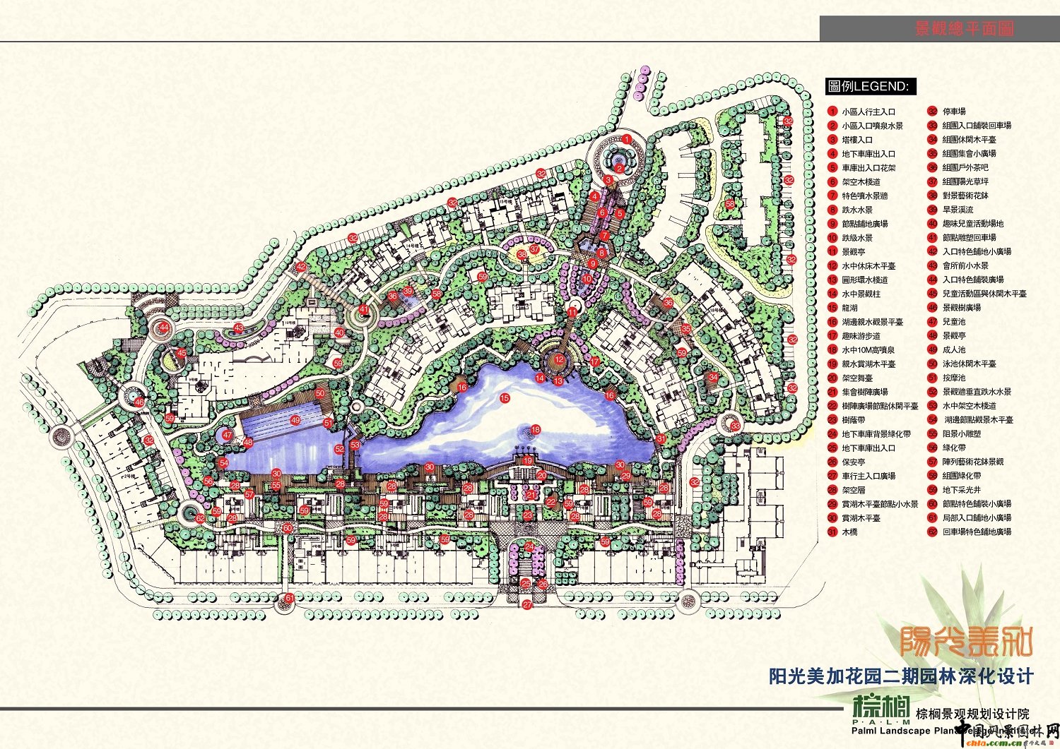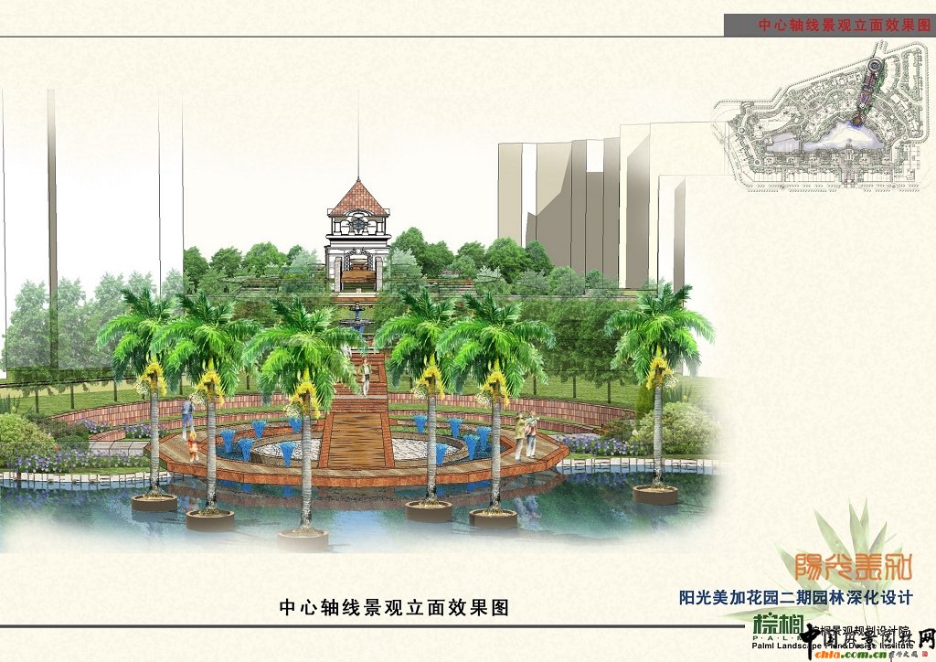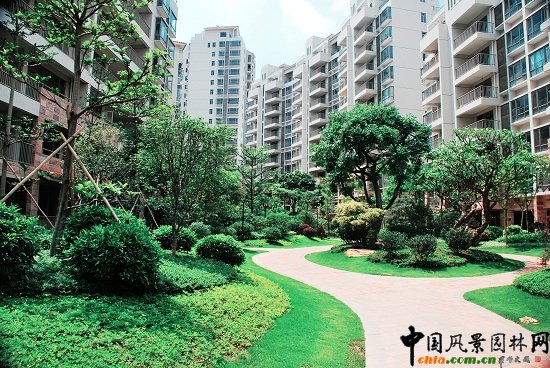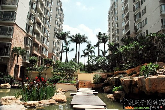 中國風景園林網 在陽光美加花園,在一個與陽光、美麗交匯的地方,在一個僅有十棟樓房的小區卻擁有一個7300多平米的天然湖綜合園林景觀,棕櫚人在設計與施工上賦予了它舒適、優雅的風情……