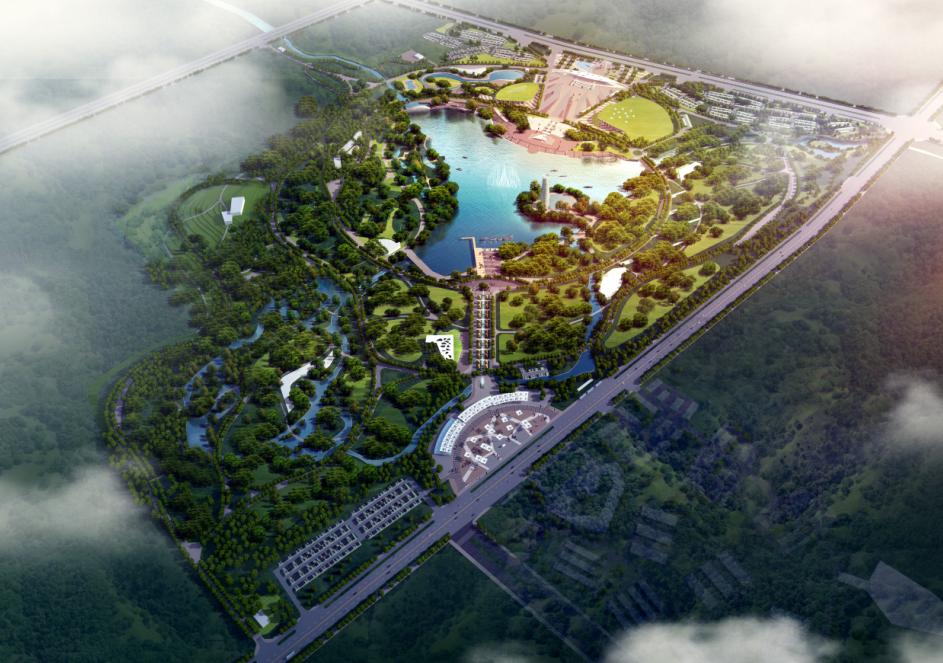 整個園區綠化景觀結構分為"一湖、二軸、三環、八區、十六景"。一湖指"楓湖",二軸為"綠色宣言"景觀軸和"山水中原"景觀軸,二軸線交于楓湖,形成全園視覺中心。八區分別是入口區、楓湖區、展園區、濕地區、背景森林區、綠色生活體驗區、休閑娛樂區和苗木花卉交易區。十六景指內環以外八景,包括挹秀峰、花廊、多彩大地、綠色生活體驗區、森林氧吧、科技園、兒童天地、花語廣場;環湖八景包括楓湖半島、楓湖廣場、陽光沙灘、音樂噴泉、生態浮島、濕地、雕塑"和諧"、雕塑"自然"。