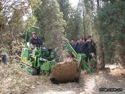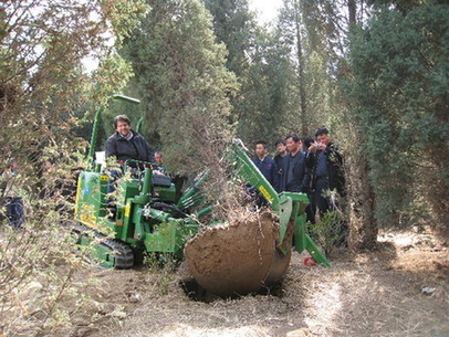 意大利人克里斯帝安嫻熟地操作著自己研發制造的好馬克(HOLMAC)移樹機,用3分鐘把一棵樹齡18年、樹高6米、地徑22厘米的檜柏從苗圃地里挖出。這是記者4月2日在北京小湯山苗圃看到的一幕。 據好馬克移樹機的中國獨家代理——綠友機械集團公司負責人介紹,好馬克移樹機的工作原理是通過刀頭的高速振動,圓幅形刀片切斷樹根下方土層及樹根,從而完成挖掘樹木的過程。由于挖掘一棵樹根土球直徑1米的樹僅用3分鐘~5分鐘,所以挖樹過程對樹本身沒有傷害,其完整的樹根土球還有助于提高樹木移植后的成活率。 目前好馬克專業有三種型號,樹根土球直徑可在25厘米~140厘米范圍內操作。用戶根據被移植的樹木的生長密度、地形等條件及對樹根部土球的尺寸要求,選擇不同型號的移樹機和刀具,就能高效、省力、高質量地完成大批量挖掘移植樹木的工作。 ![]() 圖為綠友機械集團公司在北京小湯山苗圃為各地用戶現場演示好馬克移樹機的挖掘移植樹木的過程。