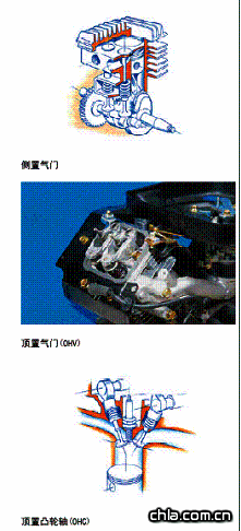 氣門 氣門的啟閉可以由凸輪軸上的凸輪帶動氣門控制,也可以由氣門頂桿帶動搖臂控制。氣門頂桿的移動可以由曲軸上的擺桿機構或凸輪驅動,并控制氣門的開啟和時間配合。 控制燃油混合氣體在發動機內部流動的進氣門和排氣門通常布置在缸體側面即側置氣門或缸體頂部即頂置氣門。 側置氣門 側置氣門是較陳舊的發動機設計,氣門位于缸體側面特殊的氣門箱中,各自安放在氣門座中。氣門頂桿由曲軸上的凸輪帶動,控制氣門的啟閉。 頂置氣門(OHV) 這種設計能滿足更大功率和轉速的發動機需求。氣門位于缸體頂部各自的氣門座中,氣門啟閉直接由頂置凸輪軸上的凸輪或由搖桿帶動氣門桿控制。頂置氣門發動機可以更平滑的進氣,排氣行程更迅速完全。提高燃燒效率,允許采用更高的壓縮比。因此可以獲得更大的發動機動力輸出,避免過量積碳。 頂置凸輪軸(OHC) 頂置氣門發動機可有頂置凸輪軸(OHC)機構,借以帶動氣門。頂置氣門軸一般位于缸體頂部,而不是位于發動機箱或曲軸箱內。 四沖程發動機相比兩沖程發動機具有噪音低,燃燒充分,尾氣污染小,工作震動小等優點,適于大功率長時間運轉的設備。中低檔發動機化油器結構多為浮子式,發動機潤滑由曲軸箱內獨立的油泵或甩油爪提供,限制了發動機工作的角度,一般只適于平坦地面放置;高檔產品由于具有燃油泵和壓力潤滑油泵,可以在復雜的起伏地形式使用。 總之,兩種類型的發動機各有利弊,主要還是要看產品的具體使用用途和工作環境特點,選擇更為適當的動力。盡量發揮發動機的優勢,提高產品的性能和工作效能。