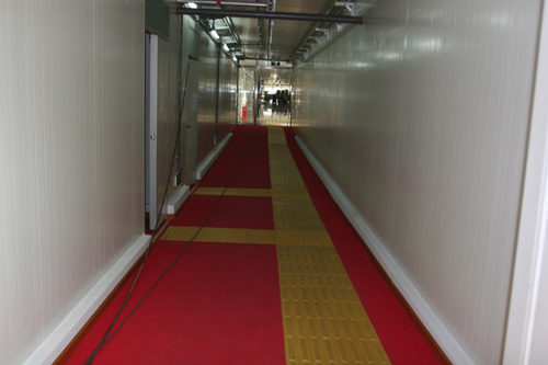 此外,該場館也充分體現了“人文奧運”的特點。7個無障礙廁所保證殘疾人順利如廁;運動員活動區設有盲道,盲人運動員走動自如;兩片殘疾人觀眾席區,容納20個殘疾人座位;“會說話”的殘疾人電梯;四通八達的場館內輪椅坡道; 90度墻角處全部軟包處理以及在任何坡道和臺階一側均設置了殘疾人扶手或欄桿。這不僅方便了殘疾人運動員,也極大地方便了殘疾人觀眾。