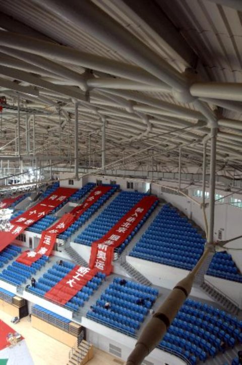 根據2008年北京奧運會羽毛球、藝術體操比賽期間對項目的使用要求,并考慮場館賽后的綜合利用,本項目建設內容有:比賽及熱身場的賽事區、觀眾區、賽事管理區、場館運營區、貴賓及官員區、贊助商區、運動員及隨隊官員區、新聞媒體區和安全保衛區等。在體育館的功能定位上,本著“綜合利用、服務大學、兼顧社會”的原則,在滿足2008年奧運會羽毛球、藝術體操比賽項目奧運賽事要求的同時,將充分體現了奧運精神于體教結合的統一。