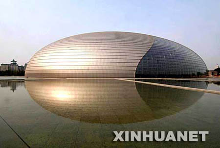 2007年9月,國家大劇院在黨中央、國務院的關懷下,在建設領導小組的堅強領導下,宣布工程基本完工。