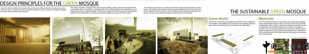 鼓勵重新利用和改造現(xiàn)有的結(jié)構(gòu)的宗教建筑創(chuàng)新設(shè)計(jì)競賽“建筑:難題還是解法”中,Onat Oktem, Ziya Imren, Zeynep Oktem, Uri Tzarnotzky他們的綠色清真寺方案贏得此項(xiàng)比賽,成為“最佳獨(dú)立的宗教建筑”。項(xiàng)目決定設(shè)計(jì)不僅是一個清真寺,更是各種社會活動和互助的宗教情結(jié)。