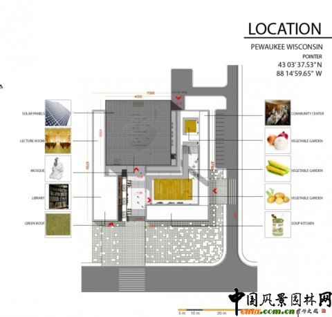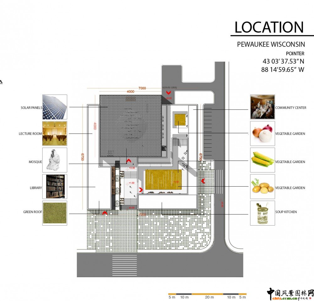 清真寺在祈禱前必須沐浴,使得它比起其他宗教建筑需要跟多的水。為了減少水的消耗而采取了一些有效地節(jié)能策略。對雨水和沐浴后的水進(jìn)行收集,使得凈化過的水能再次用于蔬果花園中高效的滴管系統(tǒng)。蔬果花園里種植著的蔬菜可以為周邊社區(qū)取用,選擇玉米、洋蔥、土豆此類蔬果則是因?yàn)樗鼈冏陨硇杷坎桓撸夷軌蚝芎玫倪m應(yīng)當(dāng)?shù)貧夂颉?/P>