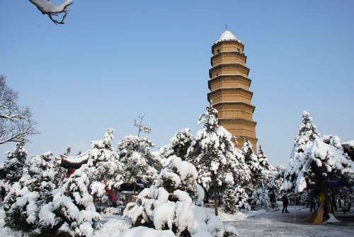 古稱嘉嶺山,位于延安城東南,延河之濱。在山上可鳥瞰延安整個城區(qū)。因山上有塔,通常稱作寶塔山。寶塔山是革命圣地延安的重要標(biāo)志和象征。1953年版第二套人民幣二元券正面圖案為“延安寶塔山”。中華人民共和國1955年頒授的獨立自由勛章,核心圖案就是寶塔山和紅五星。國家郵電局發(fā)行的紀念郵票中也屢屢出現(xiàn)寶塔山!皫谆鼗貕衾锘匮影,雙手摟定寶塔山”,著名文學(xué)家賀敬之的名句熱情的謳歌了寶塔山在中國人民心目中的神圣地位。寶塔山高1135.5米,山上寶塔,始建于唐,現(xiàn)為明代建筑。平面八角形,九層,高約44米,樓閣式磚塔,中共中央進駐延安后,這座古塔成為革命圣地的標(biāo)志和象征。建國后,國務(wù)院將延安寶塔歸入第一批全國重點文物保護單位延安革命舊址之中。寶塔山上,歷史文物和現(xiàn)代革命文物星羅棋布,交相輝映,滿山綠樹成蔭,花草爭艷。延安旅游集團公司成立后,又投入大量資金,在山下修仿古式山門、上山踏步道,整修了摘星樓、烽火臺、新添置了巨型大鐘一座,巨型大鼓一尊。喻名“平安鐘”、“太平鼓”,游人擊之金聲玉振,山鳴谷應(yīng),“一擊則身體健康,喜氣滿庭;二擊則風(fēng)調(diào)雨順,物阜民豐;三擊則國泰民安、普天同慶”。山上還修建了休閑觀光設(shè)施和風(fēng)味小吃,游人在游覽之余還可。裝飾了大量的泛光和霓虹燈具,一到夜間,寶塔、摘星樓、烽火臺、上山道滿山綠樹相映在各色燈影中,恍若仙境,映照得山城延安更加秀美壯麗。寶塔山是延安最重要的游覽區(qū)之一,中外賓客無不登山憑眺,縱觀圣地全貌。眾口一詞:“只有登上寶塔山,才算真正到了延安”。