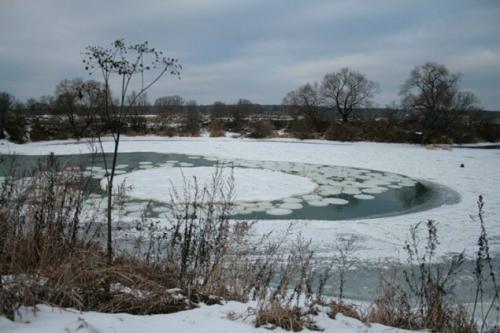 俄羅斯出現的“冰圈”,周圍有碎冰