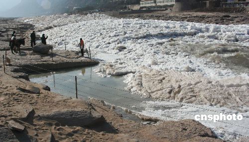 壺口瀑布一夜冰封 附近群眾緊急疏散