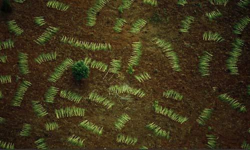 4、在肯尼亞,正在等待被曬干的植物整齊地排列在一棵樹的四周。