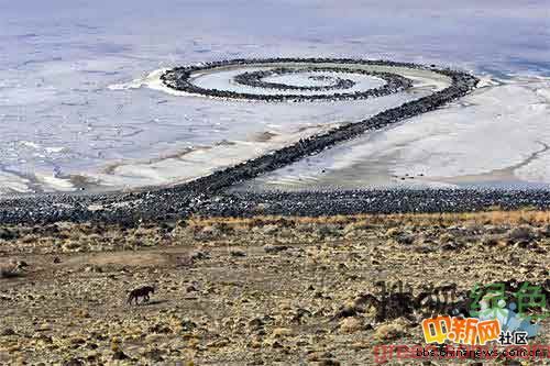 7.螺旋形防波堤,猶他州。大地藝術(shù)螺旋形防波堤,位于布里格姆以西30英里處,在大鹽湖的北部。這個(gè)特殊的雕塑由藝術(shù)家羅伯特·史密森于1970年用玄武巖和泥土創(chuàng)造而成。螺旋長1500英尺(450米),一直延伸到湖深處。之后,由于湖面上升,這個(gè)螺旋形防波堤沉于水下,1999年又重出湖面。