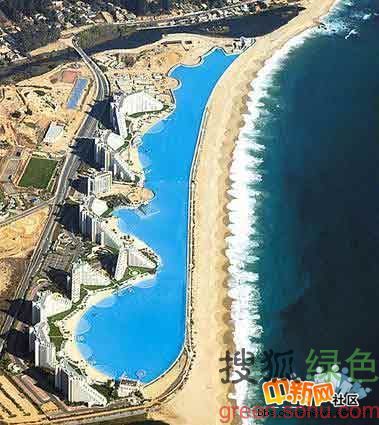 6.世界上最大的游泳池,智利。世界上最大的戶外游泳池位于智利的海濱城市阿爾加羅沃。這個(gè)人工游泳池是用附近太平洋的水來填滿的。據(jù)吉尼斯世界記錄,這個(gè)于2006年12月竣工的游泳池長3324英尺(990米),在2007年被評(píng)為世界上最大的游泳池。