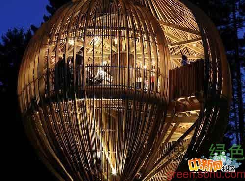 16.掛在樹上的餐廳,新西蘭。這個不尋常的餐廳理念起初是給新西蘭某公司做廣告,餐廳所用的原材料都來源于該公司。餐廳位于新西蘭奧克蘭北部沃克沃思的一棵紅杉樹上,離地面30英尺(9米)。