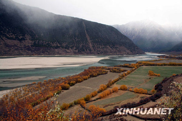 這是林芝地區(qū)雅魯藏布江風(fēng)景(11月21日攝)。