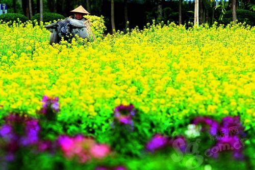 廣州石門:2~3月,廣州石門景區的油菜花會在高山腳下盛開,這片高山河谷中的花田,非常有氣勢,還有禾雀花助陣