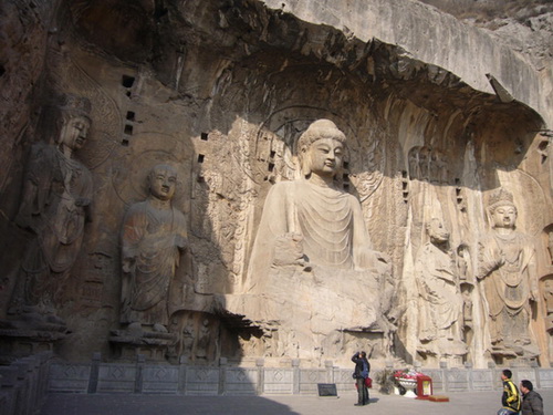除了牡丹,龍門石窟也使得洛陽聞名于世。它是中國著名的三大石刻藝術(shù)寶庫之一,位于洛陽南郊12公里處的伊河兩岸,經(jīng)過自北魏至北宋400余年的開鑿,至今仍存有窟龕2100多個(gè),造像10萬余尊,碑刻題記3600余品,多在伊水西岸。數(shù)量之多位于中國各大石窟之首。
