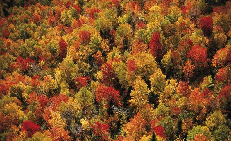 察勒沃爾克斯,魁北克。諸如樺樹、山楊、花楸和白楊一類的柏類以及闊類樹將魁北克的察勒沃爾克斯地區覆蓋得嚴嚴實實,這里也是200多種鳥類和諸多哺乳動物的家園,這里孕育的哺乳類動物包括北美馴鹿、山貓、黑熊、駝鹿、山狗、北美灰狼、北美野牛、灰熊、海貍等等。未來的全球溫度上升將會威脅到加拿大的北方森林和它多樣化的野生物種。